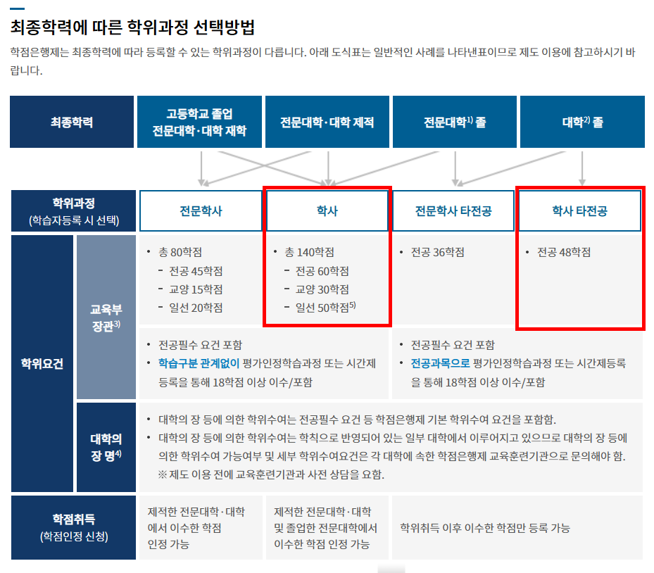 학위(전문 학사/학사)를 받을 수 있는 제도입니다.