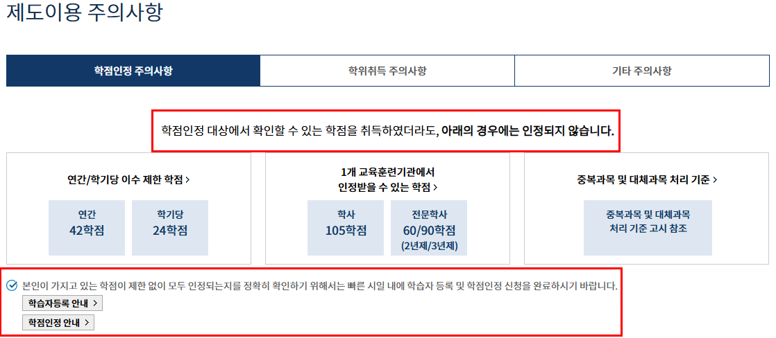 학점은행제 학습자등록과 학점인정 신청은 필히